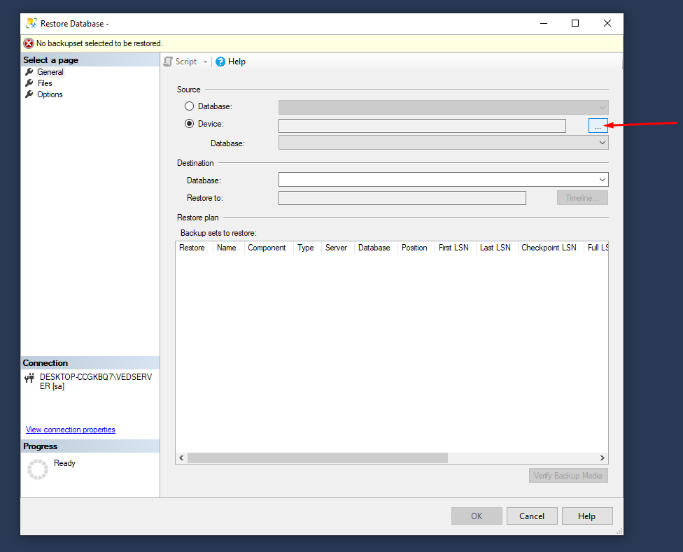 - Select Device:;and then select the ellipses ..., and to locate your backup file.