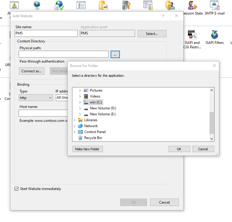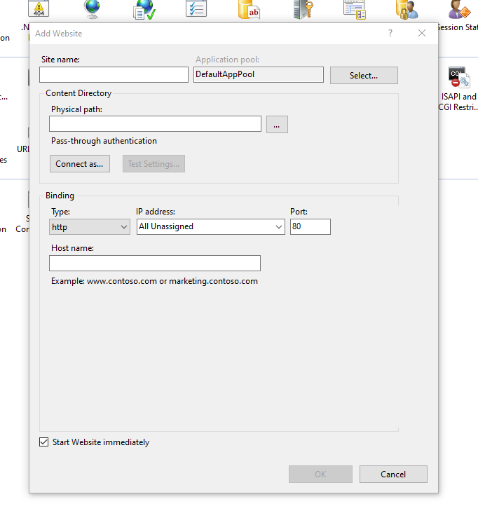 - Give the name of the website and add the physical path for your application where you stored the application build.